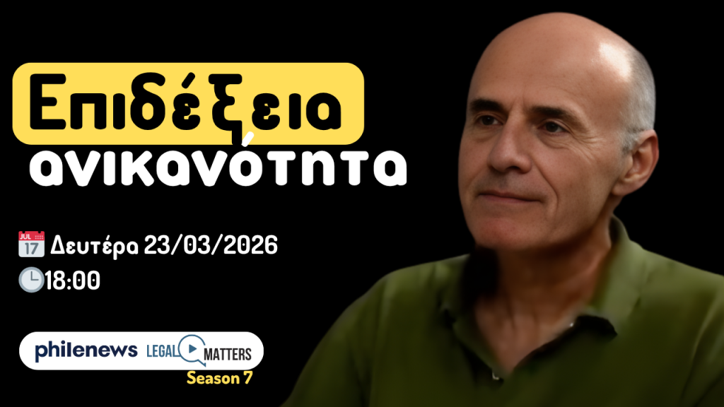 Στο επόμενο επεισόδιο του LegalMatters φιλοξενώ τον καθηγητή Χαρίδημο Τσούκα, με αφορμή το πρόσφατο άρθρο του «Επιδέξια ανικανότητα». Μιλάμε για το κράτος που αποτυγχάνει όχι από άγνοια, αλλά μέσα από παγιωμένες πρακτικές και νοοτροπίες. Για τις κρίσεις που «μας εκπλήσσουν» ενώ τις γνωρίζαμε. Για τη διοίκηση που δεν μαθαίνει και για την ευθύνη που διαχέεται […]